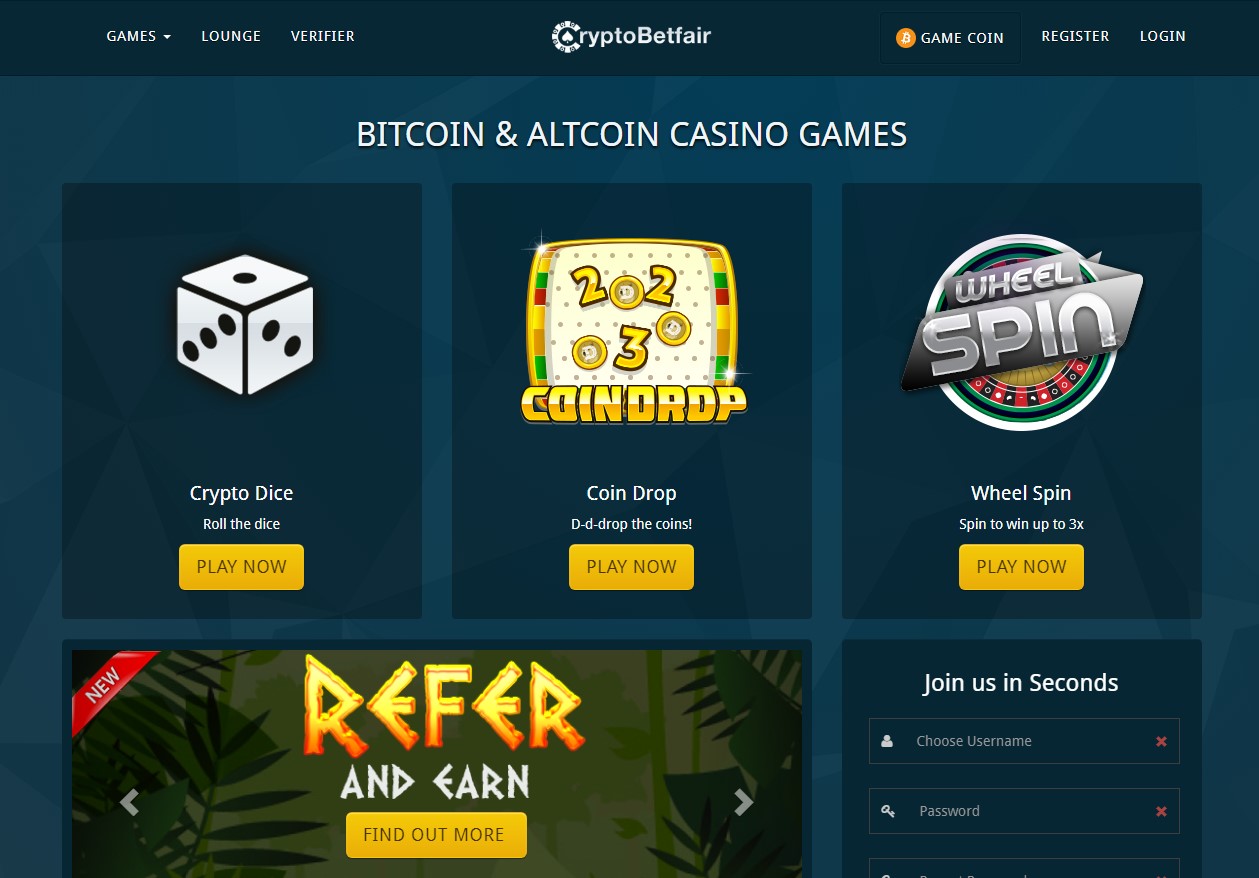 Cryptobetfair - gambling for bitcoin and cryptocurrency, the site was created in 2015, there is no information about the gaming license. During its existence, the site was updated with minimal but useful features, the check on honesty of bets at the maximum was improved, and new game coins were added. The games were not updated, everything remained as it is 3 games: dice game, coin drop game, wheel of fortune game. General chat without a category of languages. Support service via general chat or a separate plug-in chat. Quick deposit replenishment and cryptocurrency withdrawal.