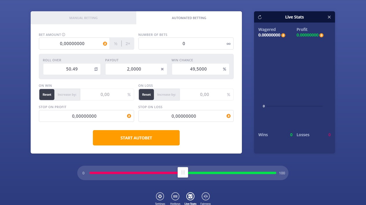 It is definitely one of the regularly visited cryptocurrency dice sites, there is a site for a very long time, one of the centenarians of dice The site is equipped with a game of dice with automatic bets, a general chat room for communication, with the ability to receive bonuses from chat bots and chat players, a 24/7 live chat support service, a forum where you can discuss various issues on the site.